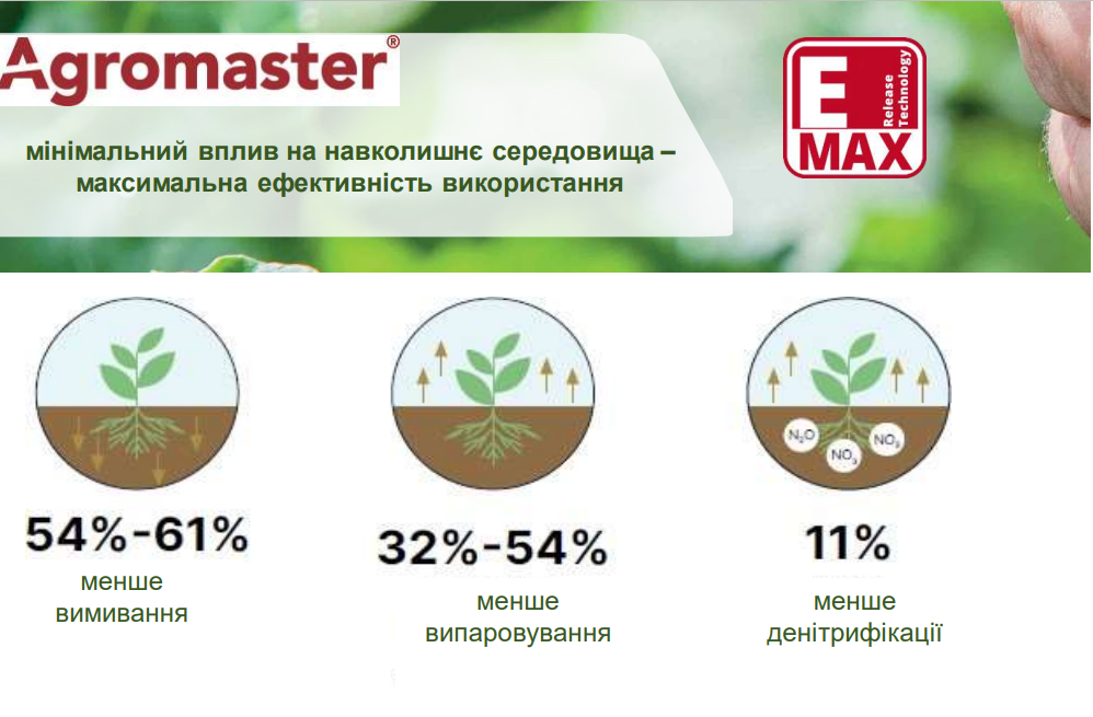 При цьому втрати азоту від промивання в АГРОМАСТЕР теж на 54-61% менше звичайних аналогів.